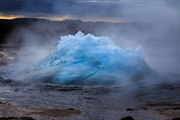 アイスランドで有名な観光スポットの一つです。この周辺にはたくさんの間欠泉がありますが、現在活動しているのは1つか2つのようです。約5分の間隔でお湯が吹きあがります。80度以上の熱湯ですのでかからないように注意してください。