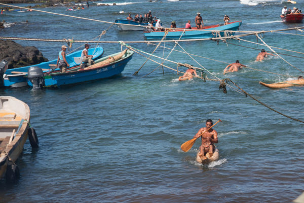 祭りでは色々な競技が島のいたるところで実施されます。例えば海では藁のような植物で作られたカヌーに乗って順位を争ったり、地上では乗馬や槍投げなど多種多様な競技があります。某テレビ番組(イッテ…)でも以前放送されたバナナの木のそりで急勾配の坂を滑るというのも、この祭りの競技です。